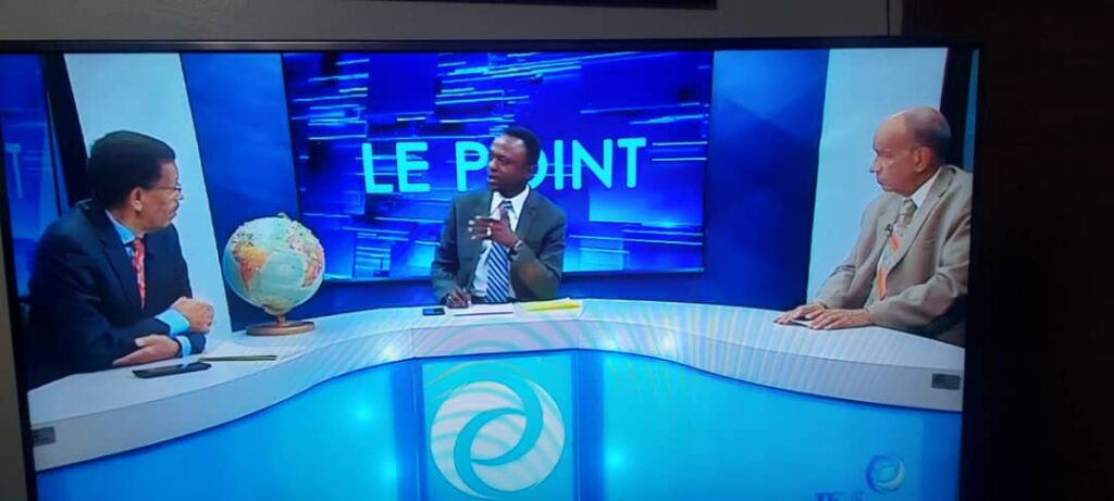 Gérard Jean-Baptiste HH2GB et Jean-Robert Gaillard HH2JR à l'emission "Le Point" de Radio Télé Métropole D'Haïti, le 24 Mars 2023.