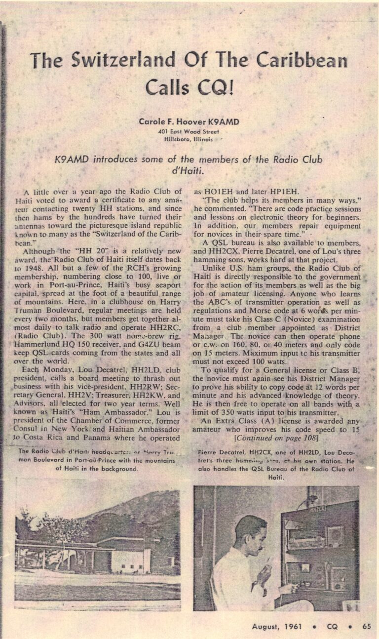 Les Pionniers HH2W Le Radio Club D'Haiti 1959. Victor Lemoine HH2V Miquette et Pierre E. Decatrel HH2EP (WB1EZK) Herby Widmaïer HH2W Roland Dupoux HH2RX Jacques Nelson HH2U / KC2LV