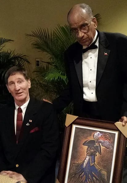 À William F. Sturridge KI4MMZ (assis) & Jean-Robert Gaillard HH2JR après remise copie du tableau "Toussaint Louverture, Racines de Liberté" de l'artiste de renommé Philippe Dodard, pour son aide inconditionelle à notre Patrie lors du tremblement de terre du 12 janvier 2010.